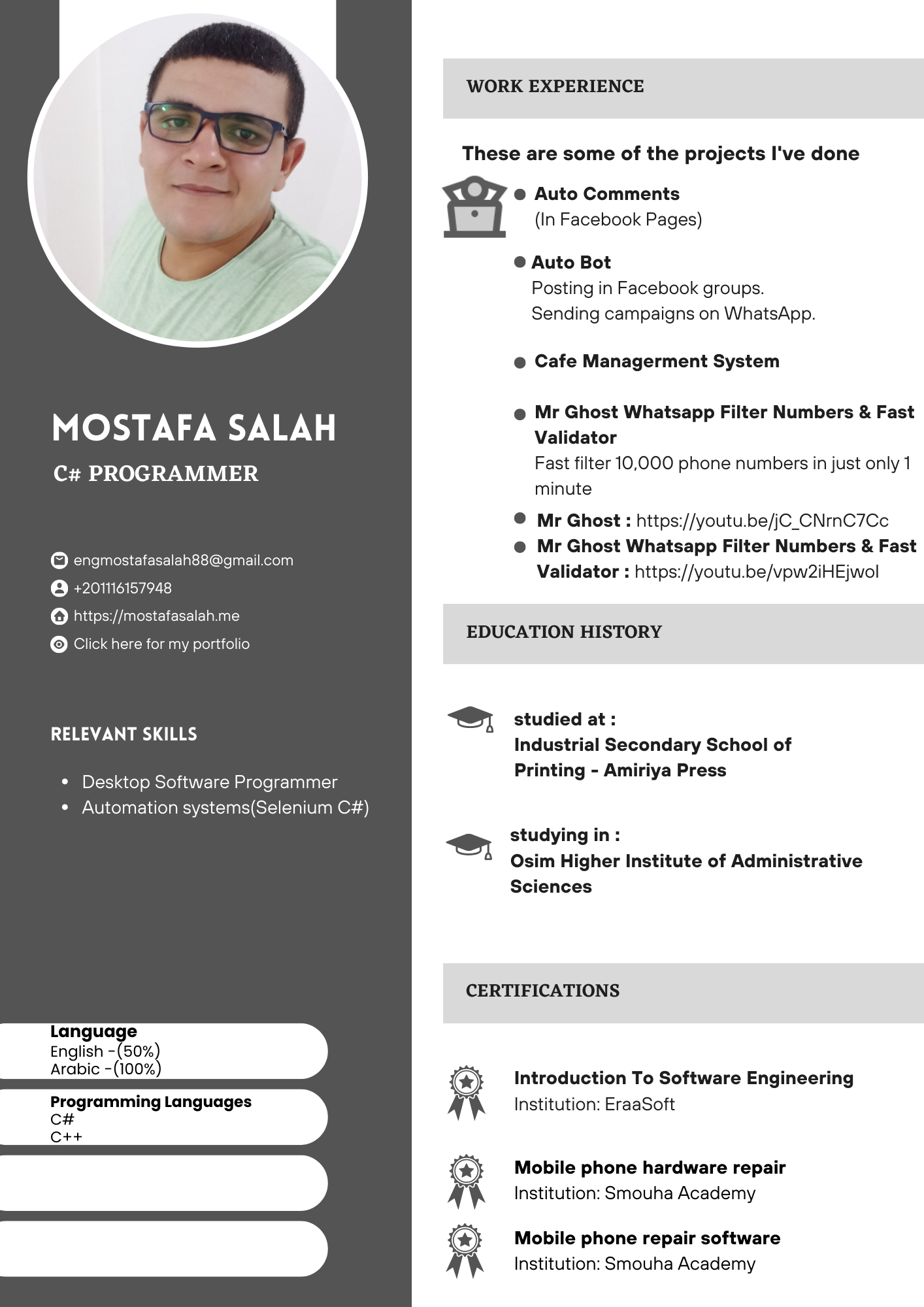 ???? مطور برامج C# ومهندس أتمتة العمليات